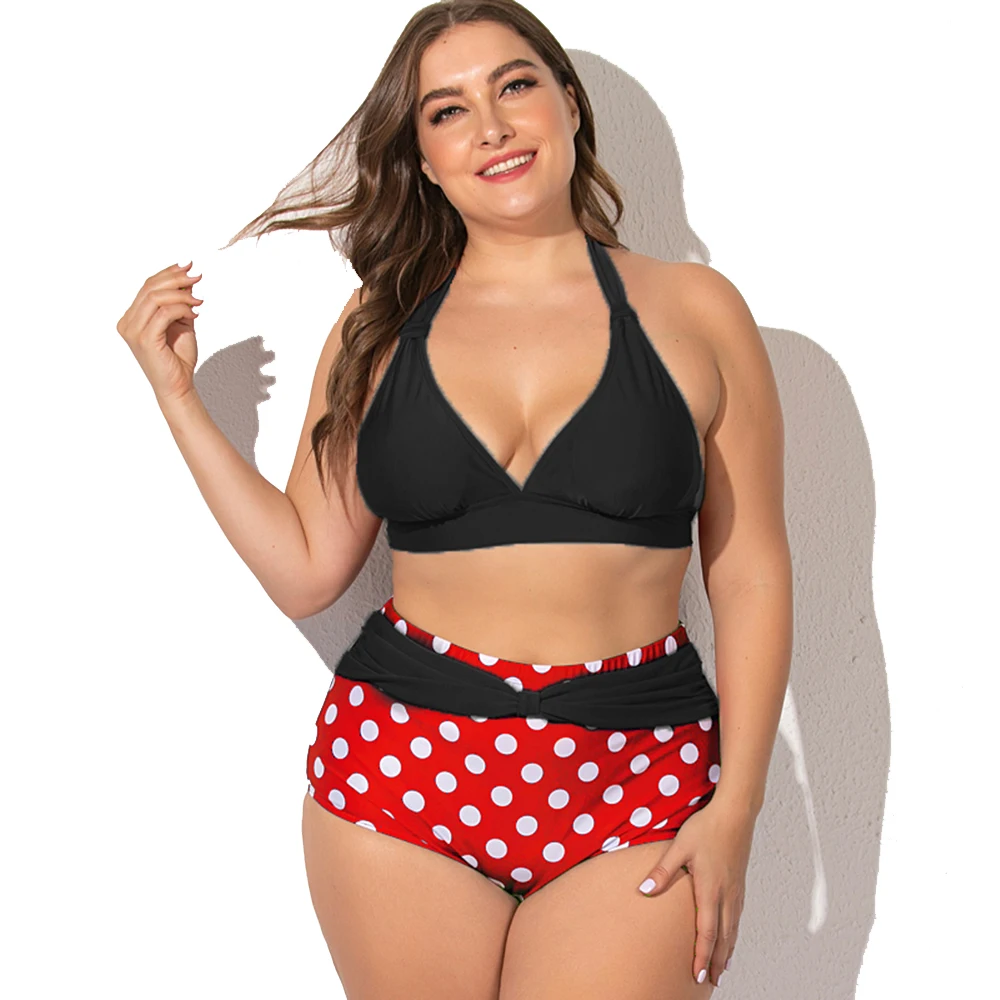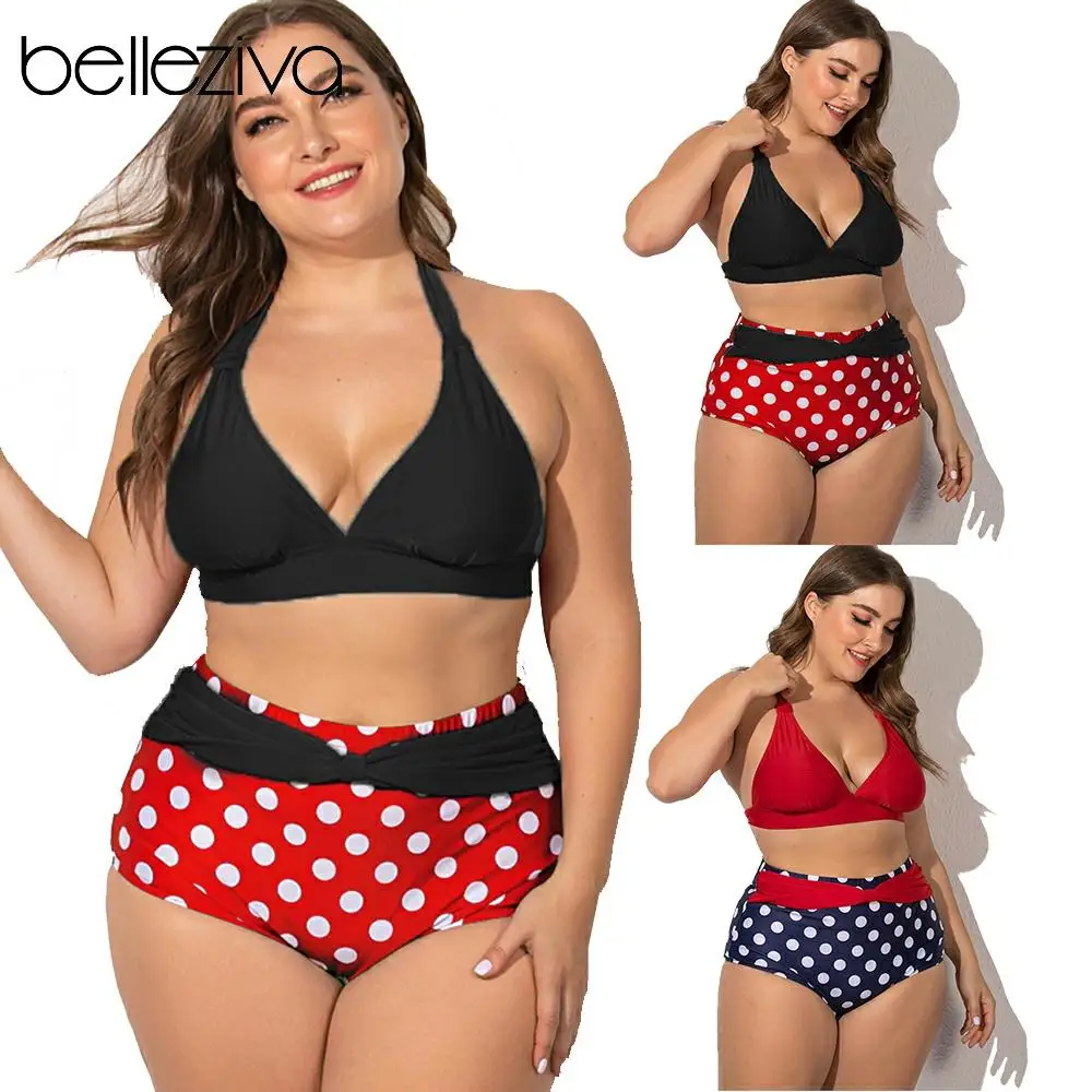 SALE Belleziva Plus Size Two Piece Swimsuits Women's Polka Dot Vintage Plus Size High Waist Bikini Botto